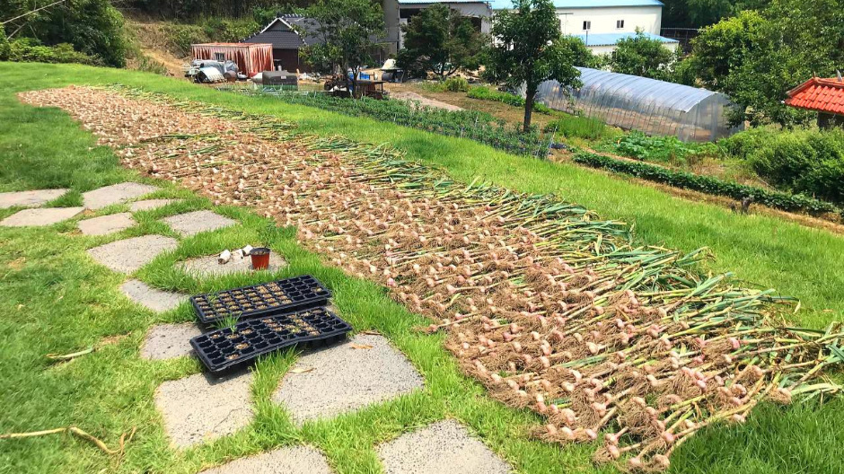 다품종 소량 생산은 진즉에 집어치웠다. 계절마다 필요한 채소들은 집 옆의 열다섯 평 작은 텃밭이면 충분하다. 넓은 밭에는 저장성이 좋은 네 가지를 재배한다. 한국인이라면 절대 없어서는 안 되는 고춧가루용 빨간 고추, 별 재료 없는 비빔밥도 휘휘 두르기만 하면 끝장나는 맛이 되는 들기름용 들깨, 일 년 삼백육십오일 모든 요리에 필수인 마늘, 콩장도 해 먹고 콩물도 만드는 서리태가 500평을 책임지는 주요 작물들이다. 이들은 무엇보다 저장성이 좋아서 다수확을 해도 문제없다.