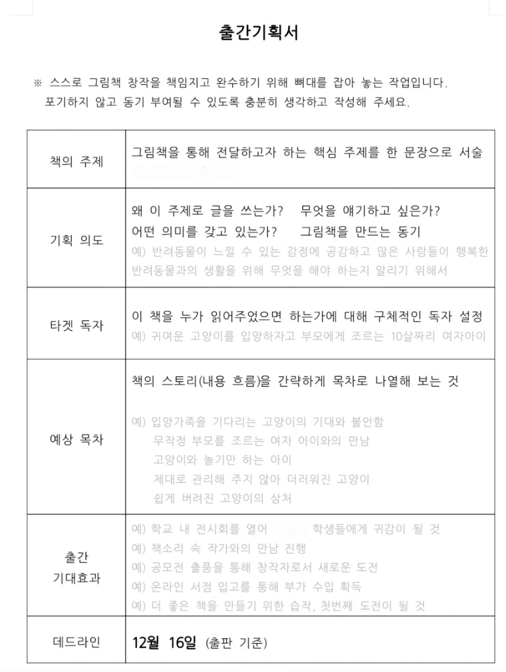 일주일 내로 출간 기획서 작성하여 단톡방에 공유하기