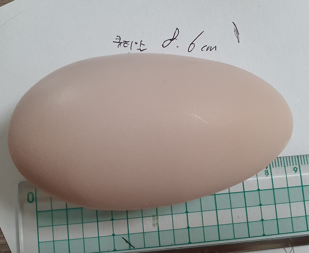 매우 보수적으로 잰 큐티의 달걀은 8.6cm였다. 아이들과 나는 마치 작은 망고 같다며 신기해했다.