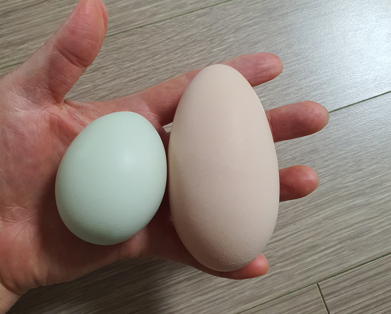 초산 후 초기의 어린 닭이 낳는 쌍황란(노른자가 두 개 있는 일명 쌍란)도 난형 이상란이라고 한다. 큐티는 산란 초기에 쌍황란을 여러 번 낳았었다. 알을 깨 봐야 알겠지만 추측컨대, 아마도 약 6개월 만에 알을 낳는 큐티로서는 초산인 것처럼 배란 조절은 잘 안 되지만 여러모로 영양상태가 좋아 큰 쌍황란을 낳은 것이 아닌가 싶다. 확인해 보고 싶지만 또 아까워서 못 깨겠다.