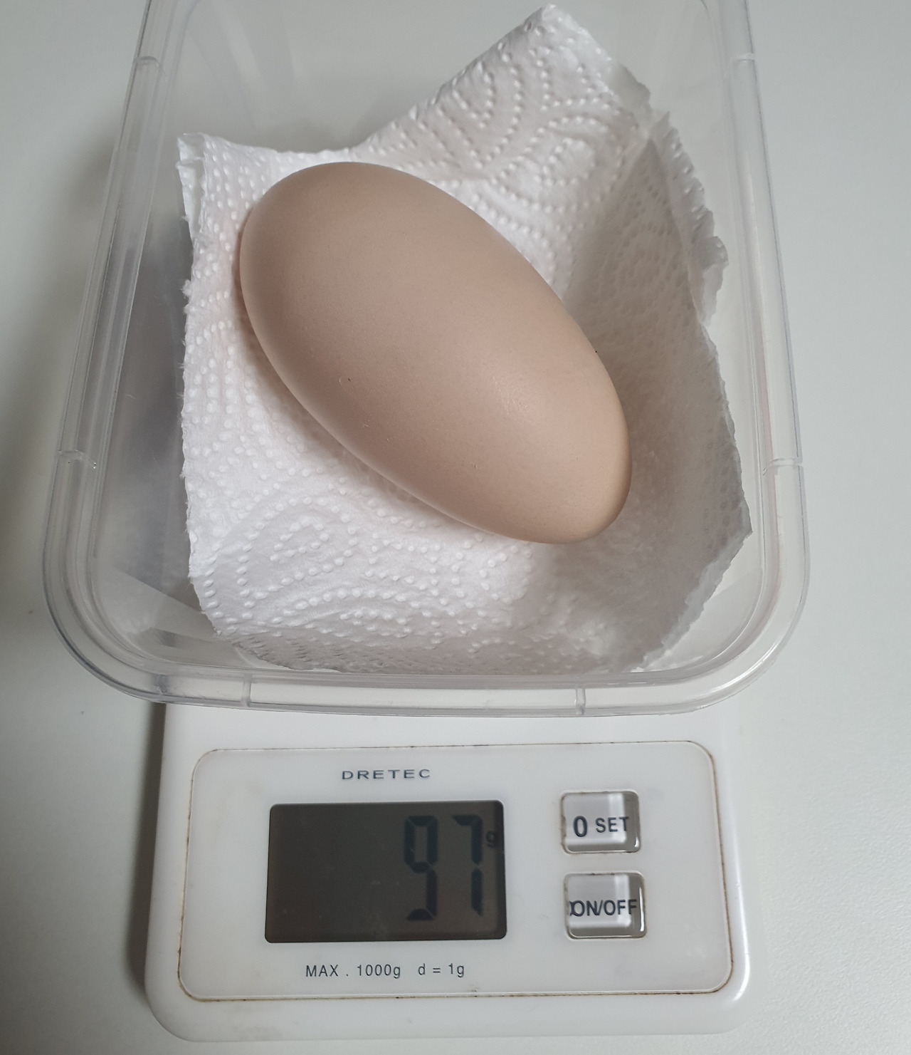 호기심이 일었다. '혹시?' 하는 기대감도 생겼다. 이전에는 달걀 하나에 몇 그램인지 전혀 관심도 두지 않았는데, 주방 계량기를 가져와 조심스레 알을 올려놓았다.