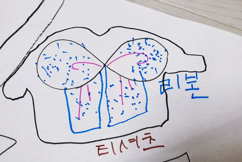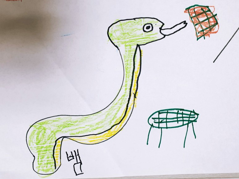 3. 그려져 있는 모양을 보고 연상되는(떠오르는) 것을 이어서 그려보도록 한다.