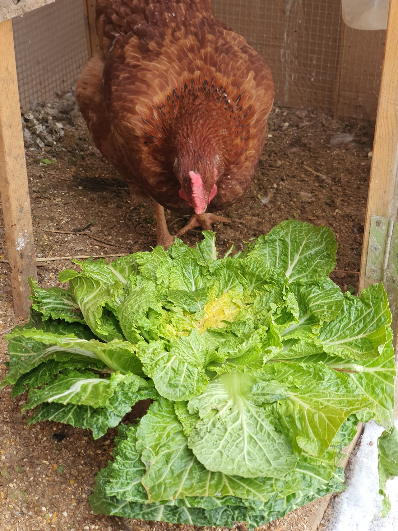 나는 그 정도까지는 아니다. 사랑스럽긴 한데 사랑하지는 않는 수준인가 보다. 기본적으로 닭 사료는 얼마 들지 않는다. 6마리 키우는데 25kg 사료를 한 달에서 한 달 보름 정도 먹는 것 같은데 농협에서 사면 17,000원이면 산다. 채소는 여름, 가을에 집 뒷 산에 돌아다니며 뜯어먹게 하거나 나의 작은 텃밭에서 나오는 상추, 배추 등을 줬다. 겨울에는 뜯어먹을 풀이 없어 걱정했는데 정말 닭을 사랑하는 그 지인이 닭을 위해 사람 먹는 봄동을 매주 대량으로 주문한 것을 염치없이 얻어 먹였다.