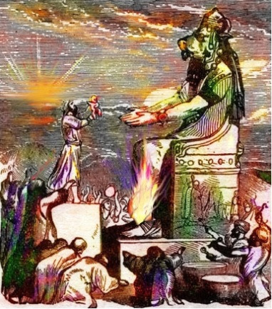 전쟁의 신 몰록(Moloch)은 셈 계통(Semites)의 민족이 섬겼던 신으로 바빌로니아에서는 명계(冥界)의 왕으로, 가나안에서는 천공(天空)과 불을 관장하는 신으로 불렸다. 몰록 신을 위해 산 채로 어린이를 불 속에 던져 넣는 인신공양(人身供養)이 행해졌기 때문에 유일신관의 히브리인들은 특히나 몰록 신앙을 가증스러운 것으로 여기고 탄압하였다. 성서는 이 고대 신에 대해 “……그를 본받아 몰렉을 음란하게 섬기는 모든 사람을 그들의 백성 중에서 끊으리라(레위기 20:5)”며 엄중하게 경고했다.