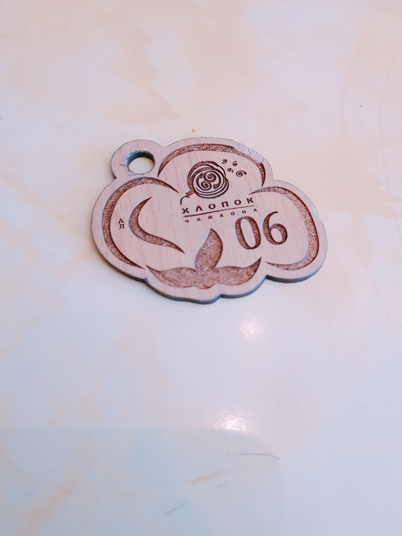 간단한 기본 세팅과 테이블 위에 놓아 준 대기표. 가게의 로고 모양이다.