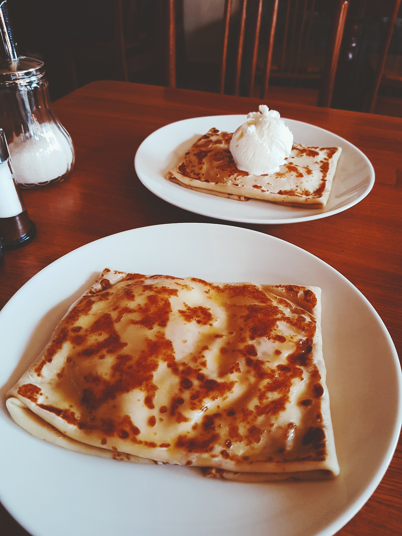 나이프와 포크를 이용하여 적당한 크기로 썰어 아이스크림을 듬뿍 찍어 먹었다. 아이스크림 와플을 먹는 느낌이었다.처음에는부족하면 어쩌지 했는데, 혼자 두 개를 다 먹고 나니 포만감이 들었다. 맛은, 밀가루와 달콤함이 만났으니, 달래 더 설명할 게 있을까?