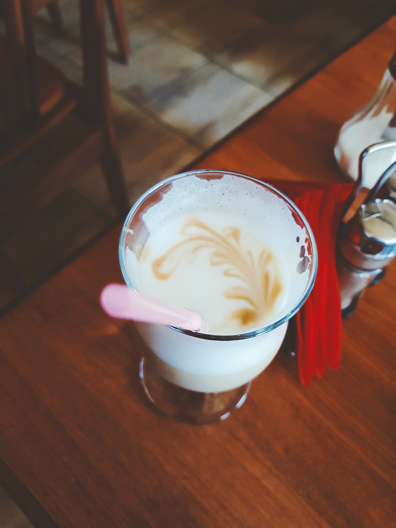 가장 기본이 되는, 꿀이 들어간 블린과 아이스크림을 한 덩이 얹어 주는 아이스크림 블린을 주문하였다. 팬 케이크라고 생각하니 고기나 야채가 들어간 종류보다는 꿀이나 크림이 들어간 달콤한 쪽이 더 잘 어울릴 것 같았다. 처음 먹는 음식이다 보니 가장 기본이 되는 걸 먹는 것이 나을 거라 생각하였고, 달달한 간식류를 워낙 좋아하는 편이기도 해서... 카페라떼도 한 잔 주문하여 마셨는데, 따듯한 커피에 플라스틱 빨대가 꽂혀 나왔다. 보기 드문 광경에 처음에는 주문을 잘못한 것이 아닌가 의아했는데, 살짝 따끈한 정도라 빨대로 마시기에 그다지 어렵지 않았다.