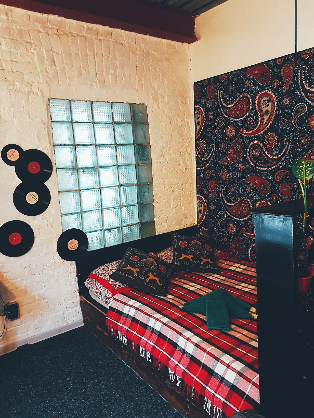 숙소 내부의 모습. 아기자기하다. 침대 위에 녹색 헝겊(...)은 숙소에서 제공하는 수건이다.
