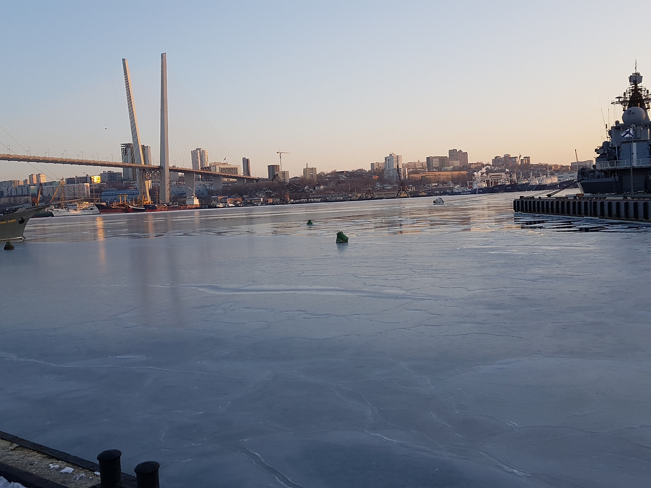 하얀 사막과도 같았던 블라디보스토크의 얼어 붙은 바다. 하늘의 색이 아름답다.