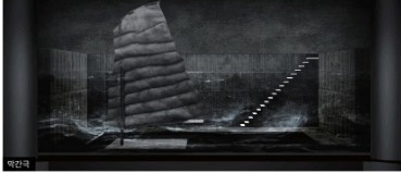 막간극인 인당수 장면에 등장하는 돛 위로 쏟아지던 빗줄기와 뒷배경의 파도의 출렁임,