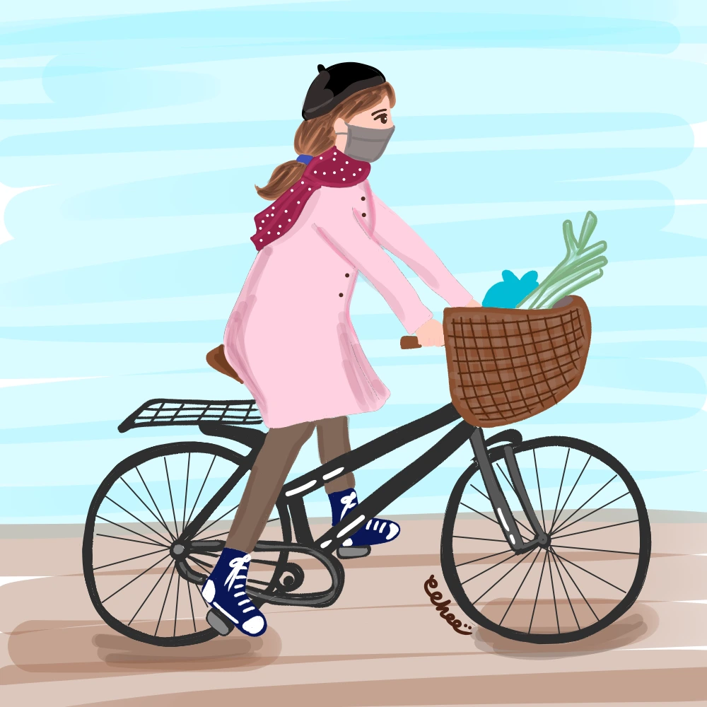 그날도 어김없이 커튼을 열고 '창문 하기'를 하고 있었다. 하늘은 맑고 구름은 누군가가 선을 그은 것처럼 하얗고 긴 날이었다. 자동차들이 드문드문 지나다니고, 사람들도 천천히 걸어 다니는 평온한 일상이 창 밖에서 가만가만 흐르고 있었다. 자전거도 종종 지나다녔다. 자전거 바구니에 푸른색 화초를 싣고 지나가는 사람이 보였다. 새로운 화초를 사서 집에 가는구나, 잘 키우시길, 생각하다 자세히 보니 푸른 것은 화초가 아니었다.