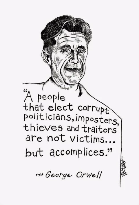 부패한 정치인, 사기꾼, 가해자, 반역자를 뽑는 국민은 피해자가 아니라 공범자들이다 - 조지 오웰