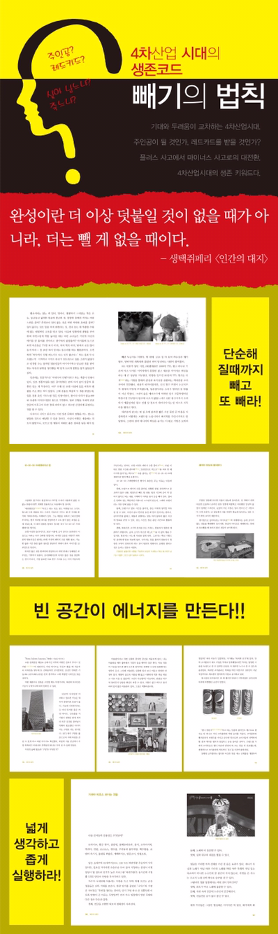 창의적인 아이디어와 습관을 가지고자 하시는 분에게 권합니다. 일상에서부터 적용할 수 있는 빼기의 습관과 생각, 세상을 바꾼&바꿀 것들에 숨겨진 빼기의 법칙이 그 동안의 plus식 사고와 습관을 탈피하도록 도울 것입니다.