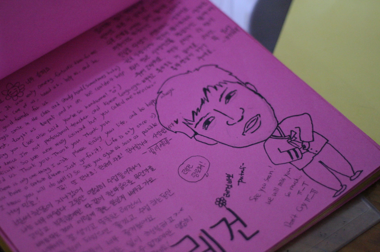 하지만 네팔에 와서 나의 믿음은 무너져버렸다. 이별은 하고 또 해도 익숙해지지 않는 거구나. 아무리 철저히 준비해도 이별이란 어딘가 미흡하고 어딘가 미숙하다. 그럼에도 또 최선을 다해 대비한다. 이별이라는 의식을 완벽히 해야 뒤탈이 없다는 생각이다. 나는 마지막 순간에 몰아칠 울음을 적정량으로 배분해 한달 동안 틈틈히 울어뒀다. 학생들을 위한 마지막 선물로 한국에서 기념품도 사다 놓았다. 마지막 수업을 앞두고 동료들과 새벽까지 편지도 썼다. 아이들의 얼굴을 그려 한복을 입혀봤는데 꽤 잘 어울렸다. 산이, 민호, 민준, 바다... 한국어로 지어준 이름도 잊지 않고 써 넣었다. 하고 싶은 말들은 영어와 한글로 썼는데 한글 편지를 읽은 친구가 한 명이라도 될런지 모르겠다.
