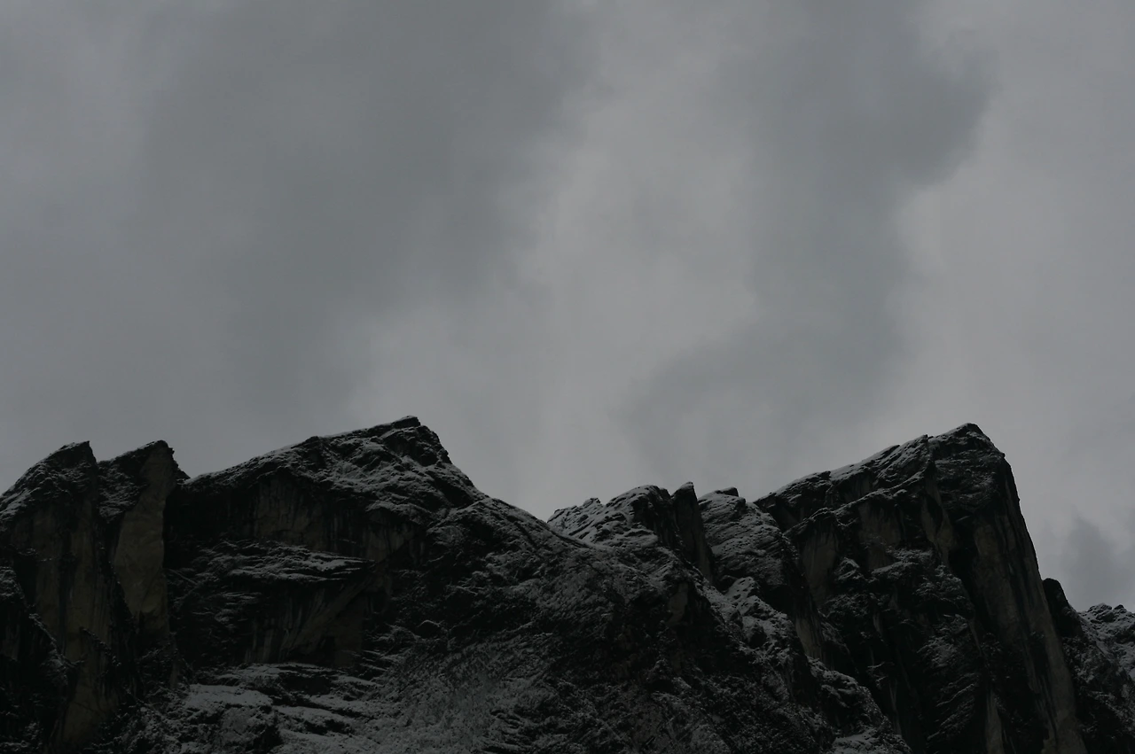 그런 상황에서, 내 앞에 엄청난 절경이 펼쳐졌다. 날씨 좋은 때를 골라 하이킹하는 준비된자들은 아마 보지 못할, 준비되지 않은 불행한 자들을 위한 절경이었다. 눈이 쌓인 절벽. 아름답고 고요했다. 바람 소리는 신의 속삭임같았다. 동료들이 먼저 가고, 나는 서서 내 숨소리와 바람소리만 듣고 멍하니 절경을 바라보았다. 영원 속에 있는 것 같았다. 나도 이 곳의 일부구나.