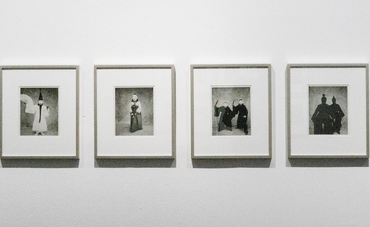 탈을 찍게 된 사연도 재미있었는데 이두현 교수가 어린 시절 구본창 작가의 옆집에 살았다고 한다. 작가는 어릴 때 옆집으로 놀러 가면 하얀 탈이 있어서 무서웠는데 어느 날 타이항공을 타고 가다가 태국의 탈 사진을 보게 되었다. 격렬한 춤동작도 아니고 멋진 무대도 아닌 그냥 길에서 찍은 사진이 더 마음에 들었고 우리나라 탈도 그렇게 촬영하겠다고 마음먹었다. 그래서 전국을 돌며 총 13종의 가면극에 등장하는 수백 명의 탈춤꾼을 사진에 담았다고 한다. 탈을 찍을 때 뒷배경으로 쓰인 천은 건설자재 판매하는 곳에서 모래를 덮어 놓은 천을 산 것인데 탈춤꾼이 서 있는 시간과 장소를 짐작할 수 없어 오히려 더 현실적인 작품이 탄생했다.