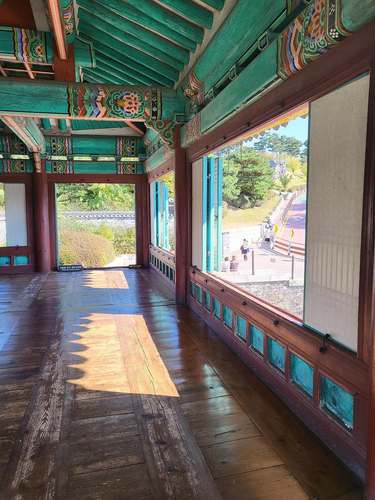 정조 임금도 물소리를 들으며 화나는 일과 억울한 일들을 씻어내려 했을 거라는 생각이 들었다. 가뭄 시에는 북수문과 남수문을 막아 물을 저장해 두었을 것이다. 평상시에도 수문이 있으니 하천의 물의 양을 조절하여 성안에서 생활 용수로 이용하였을 것이다. 홍수시에는 수문을 완전히 열어 피해가 없도록 조절하였을 선조들의 지혜가 담겨 있었다. 지금은 광교저수지가 북수문 상류에 있어서 그 역할을 대신하는 것 같다. 북수문의 이름은 화홍문이다. 신발을 벗고 이곳에 들어갔다. 근처 카페가 많아 커피를 사서 들어가니 한옥카페가 되었다. 열린 창문 사이로 들어오는 햇살이 따뜻하여 등을 쪼이고 앉았다. 나무마루에선 온기가 느껴진다.