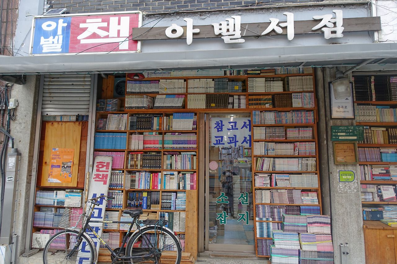 배불리 먹었으니 이제는 움직여 보겠다는 마음으로 배다리 헌책방 골목을 천천히 둘러봤다. 헌책방들은 골목에 옹기종기 모여 레트로 감성을 자극했다. 먼저 드라마 도깨비의 촬영지로 유명한 한미서점으로 향했다.