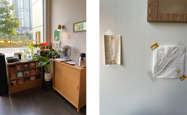 A. 가장 큰 이유는 공원이었어요. 여기가 바로 공원이랑 연결되어 있거든요. 사실 가게 앞에 뭐가 새로 들어서게 되면 가게 전경이 변해 버려서 가게 운영하시는 분들은 다들 이거에 대한 걱정을 하실 텐데, 여기는 공원이니까 그런 걱정을 안 해도 되겠다는 생각이 들었어요. 그리고 계절이 바뀌는 것을 볼 수 있겠다 이런 생각들로 이곳에 오게 되었습니다.