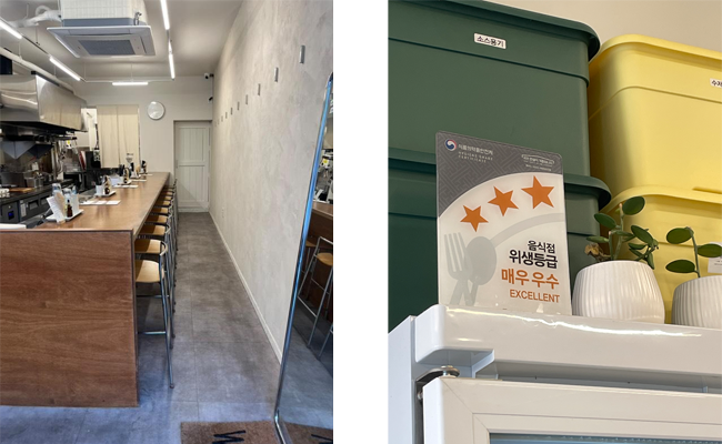 A. 주방이 오픈된 공간으로, 저희가 전처리하는 것도 다 보실 수 있는 환경이다 보니 최대한 위생에 신경을 많이 쓰고 있어요. 오픈되어 있는 게 조금 부담스럽기도 한데, 사실 좋은 점들이 더 많은 것 같아요. 피곤하고 힘들 때 눈에 잘 안 보이는 곳에는 신경을 조금 덜 쓸 수 있잖아요. 그런데 다 오픈되어 있으니까 위생은 물론이고 식재료 같은 것들에도 많이 신경 쓰게 되더라고요. 저희가 불편하더라도 손님을 의식하며 작은 것 하나까지 신경 쓰다 보니 아무래도 조금 더 떳떳하게 운영할 수 있는 것 같아요.