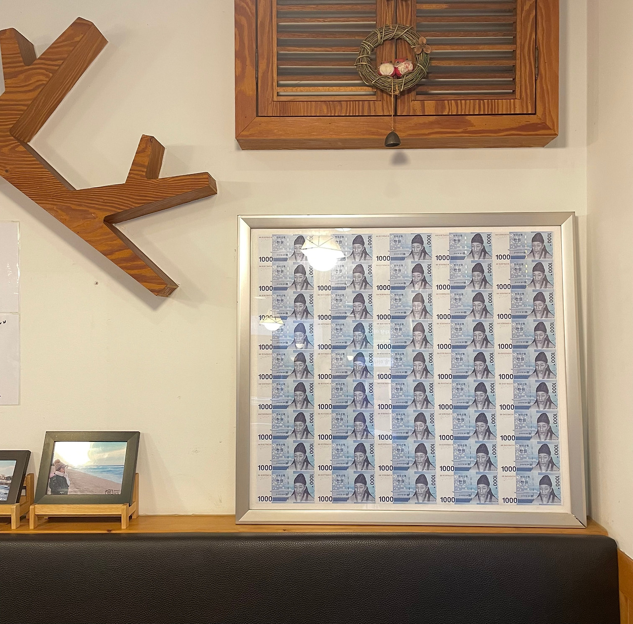 A. 네. 제가 취미로 모으는 거예요. 가게에 하루 종일 있다 보니 따로 어디 나가서 취미활동을 할 수가 없어요. 이런 거는 모아두면, 나중에 딸내미한테 물려줄 수도 있어서 조폐공사에서 나올 때마다 하나씩 사서 모으고 있어요. 손님들도 신기해하셔서 집에 두는 것보다 여기에 두고 구경하셔도 좋겠다 생각해서 이렇게 두고 있습니다. 예전에는 사진 찍는 걸 취미로 했었는데.. 가게 곳곳에 있는 사진들도 제가 직접 찍었던 거랍니다.
