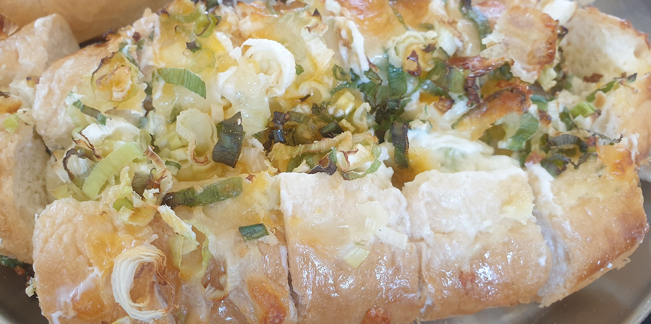 구워진 대파의 풍미와 고소한 크림치즈가 조화로운 대파 바게트다.