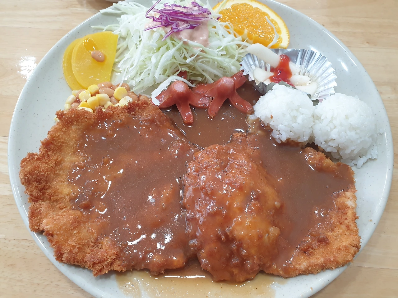 일반 돈까스는 손바닥보다 조금 큰 돈까스가 2장, 특 돈까스는 3장이다.