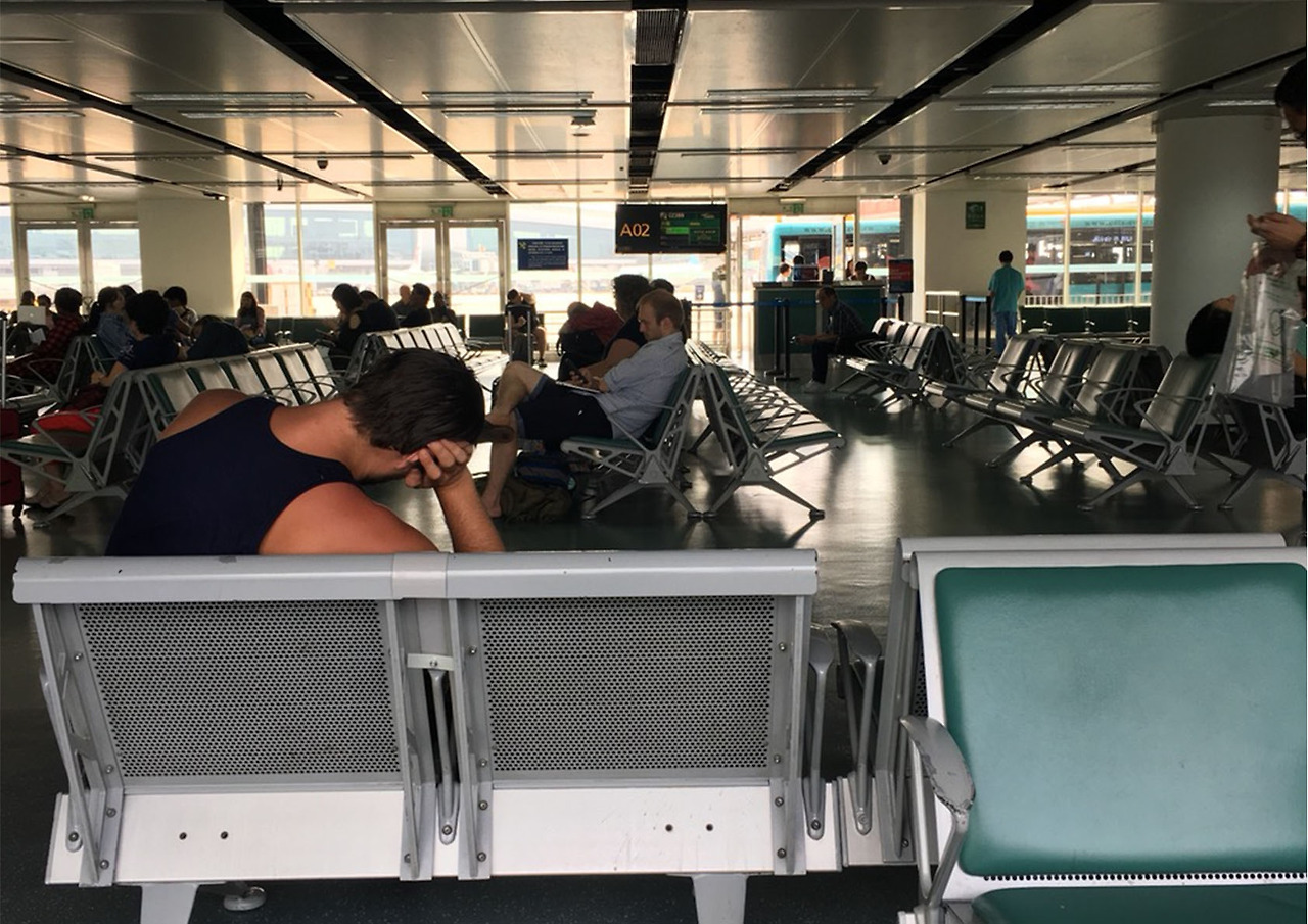 소리가 들리기 시작했고, 사람들이 의자에 앉아서 또는 서서 한 곳을 향해 화를 내고 있었다. 중국 승객들이 모두 화가 나 있었다. 화가 날 정도니 무엇인가 잘못 된 일인 것 같이 느껴졌다. 나는 그들과 함께 줄을 서고 트렌짓 호텔에 대해 물어봤다. 문제는 항공사에서 트랜짓 호텔을 잡는 것이 늦어졌던 것이었다. 항공사 직원은 호텔을 잡고 있으니 무작정 기다리라고 말했다. 팔을 늘어뜨리고 있는 중국 사람들 틈에서 나 혼자 긴장한 채로 왔다 갔다 하면서 기다렸다. 새벽이 돼서야 승무원이 돌아왔고, 같은 스티커를 붙인 사람들이 모여서 버스를 탔다. 엄마는 안심하기 시작했지만, 나는 아직 긴장한 상태로 창밖을 바라보았다. 호텔로 가는 중에 빈 건물들을 많이 봤고 사람이 오래 사용하지 않은 것들이 불안함을 부추겼다. 빈자리 없이 들어 찬 오래된 버스가 비어진 도시로 들어가는 것이 무서운 생각을 가져왔다.