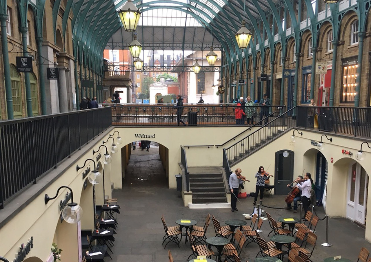 배낭을 메고 온 나는 버켄스탁 한 개만 가져왔는데 발가락이 너무 시렸다. 따뜻한 침대에서 몸을 녹이고 싶었다. 이미 시린 발가락을 적시고 싶지 않았다. 또 바람은 불 거고 그럼 비 맞은 발가락이 더 시릴 거였으니까. "엄마 발이 너무 시려" 얼굴이 하얗게 된 내가 말했고 엄마는 결단을 내렸다. 이러지 말고 안전하게 비를 피할 수 있는 곳을 찾자. 우리는 걸어서 코벤트 가든의 애플 스토어 입구 아케이드 쪽으로 갔다. 한산한 거리와는 다르게 애플스토어에는 사람들이 몰려 있었다. 그리고 애플 스토어 앞으로 코벤트 가든이 있었다.