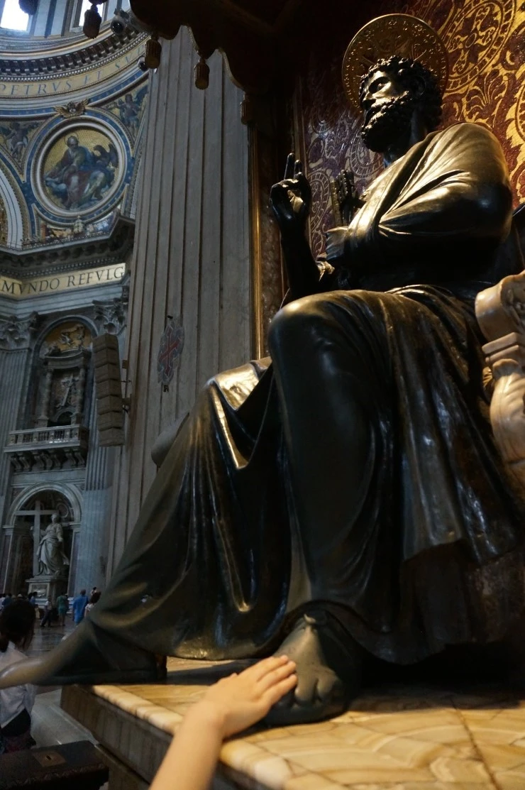베드로의 발을 만지면 소원이 이루어진다는 얘기 때문에 그의 발가락은 닳아 없어졌다.