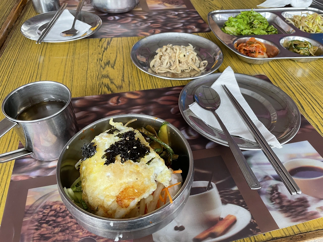 이런 쓸데없는 생각을 하던 차에 점심이 나왔다. 점심은 한식이었다. 전체 산행에 네팔 요리사들이 동행했는데 한식을 기가 막히게 잘 만들었다. 물론 매일 같이 스마트워치가 하루 운동량 목표를 초과했다고 징징징 울릴 정도로 많은 운동량 때문에 무엇을 먹었어도 꿀맛이었을 테지만. 그렇다 하더라도 매 끼니 다른 종류의 반찬과 한식 식단을 대접해 준다는 것은 이 고산에서 호사스러운 여행이 아닐 수 없었다. 음식을 사람이 이고 지고 와서 요리를 해준다는 것도 항상 감사할 일이었다.