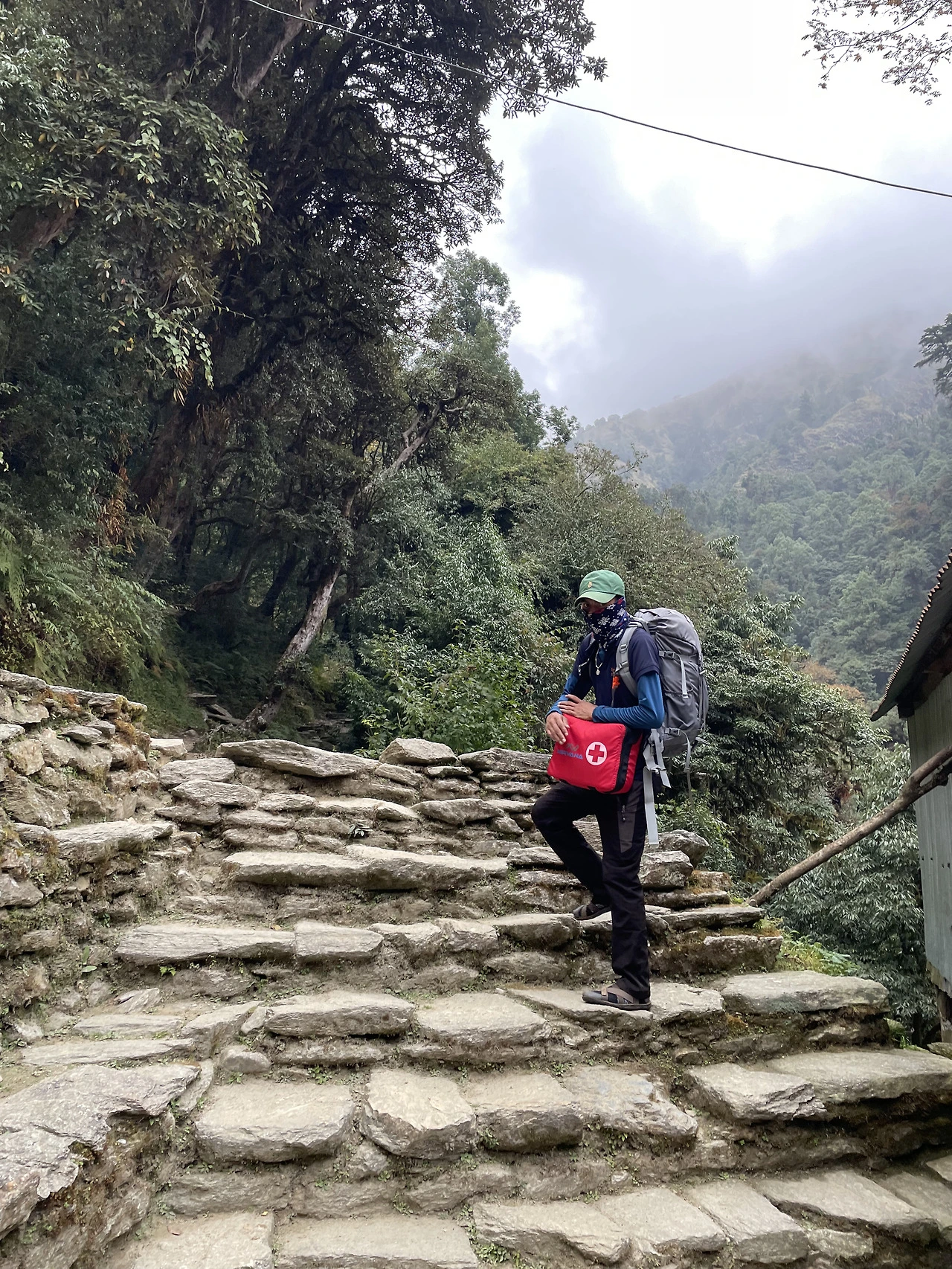 그렇다고 가파른 것도 아니었다. 깊은 호흡을 여러 차례 했다. 다행히 몇 걸음 정도를 천천히 걷다 보니 금방 다시 호흡이 정상으로 돌아왔다. 하지만 여전히 땀이 비 오듯 흐르는 상황. 일단 같은 운동이라도 평지보다는 힘들었고 고도가 높다 하더라도 네팔은 위도가 한국보다는 낮았다. 한낮에는 햇빛이 강해 생각보다 날씨가 더웠다. (구름이 낀 날이었는데도 더웠다!)
