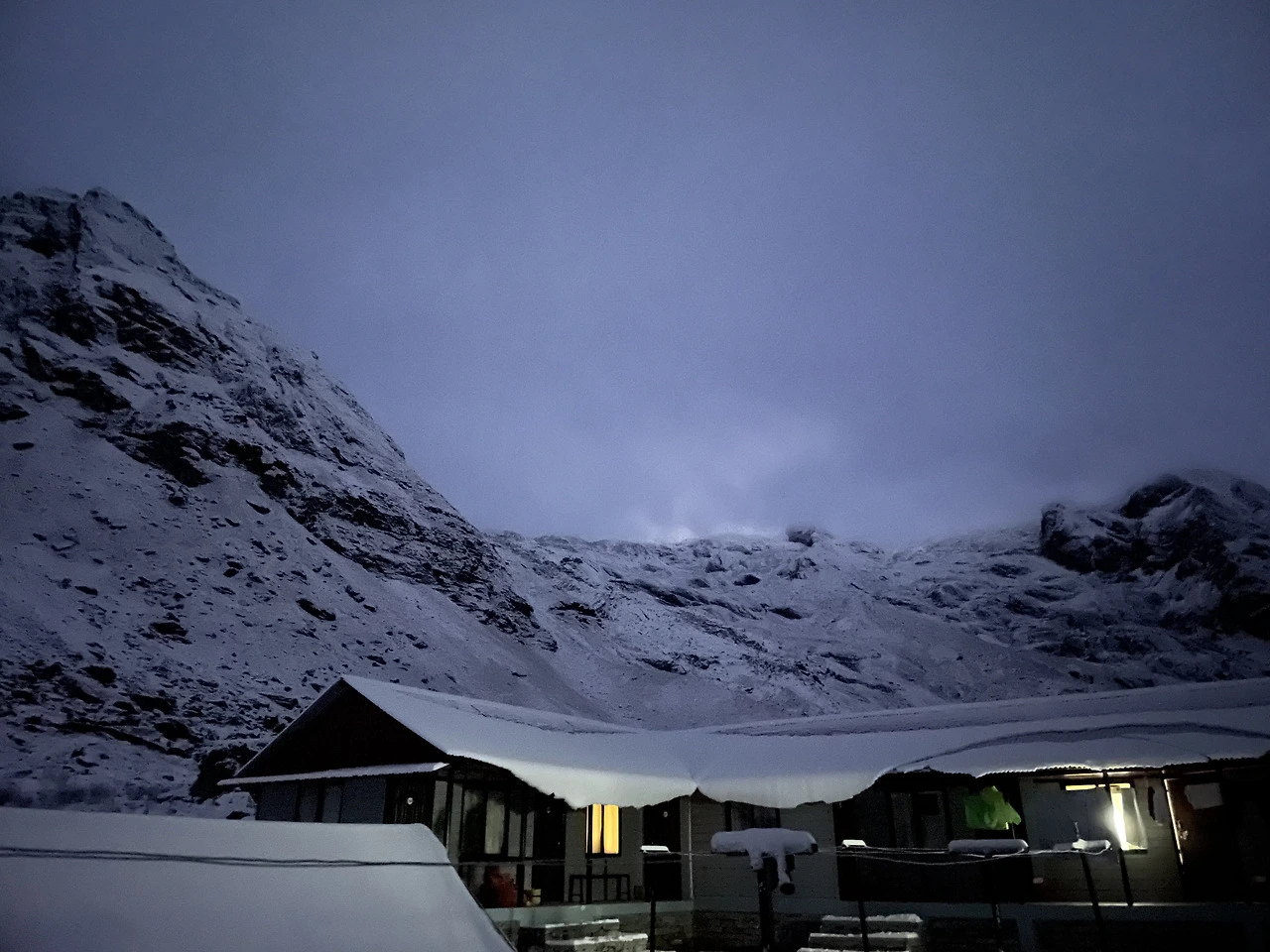 다음날 아침은 어젯밤 내린 눈으로 온 세상이 하얗게 변해 있었다. 하지만 여전히 하늘에는 구름이 잔뜩 끼어 안나푸르나 남봉도, 마차푸차레도 보이지 않았다. 당연히 일출도 보지 못했다.