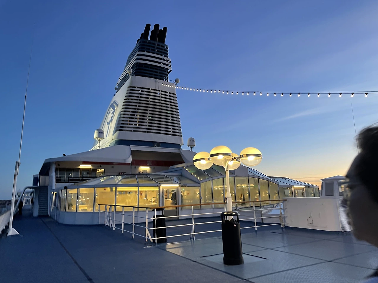 타이타닉 호만 하지는 않지만 층층이 아파트처럼 쌓아 올려진 객실과 쇼핑센터들 면세점, 공연장까지 크고 화려했다. 이 나이에도 남아 있었는지 모를 호기심으로 여기저기를 구경하며 어린아이처럼 뛰어다녔다. 5유로로 카지노에서 슬롯머신을 돌려보기도 하고 갑판에 올라가 떠나는 헬싱키의 야경을 쳐다보기도 하면서.