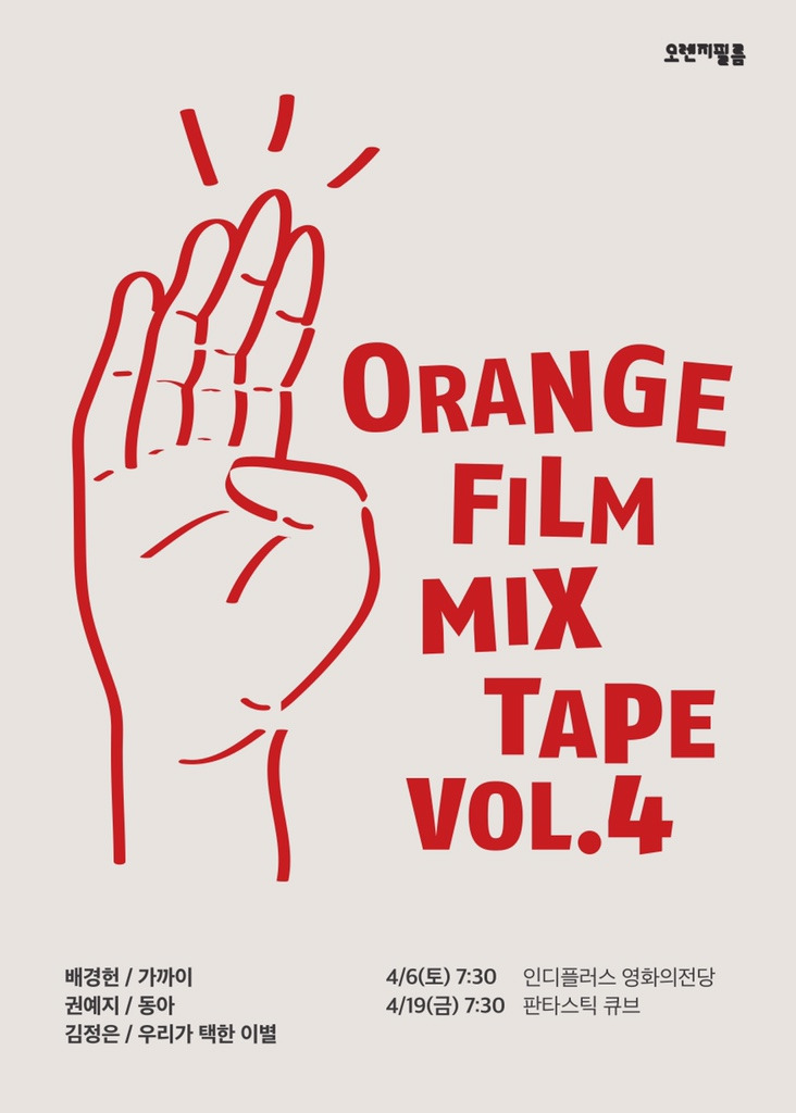 4주년 상영작은 2018.01~2018.12 기간 중 오렌지필름에서 상영했던 작품 중 극장 추천작 1편, 오렌지필름 추천작 1편, 총 2편의 감독님께 추천작을 받아 총 3편을 선정하여 상영합니다.
