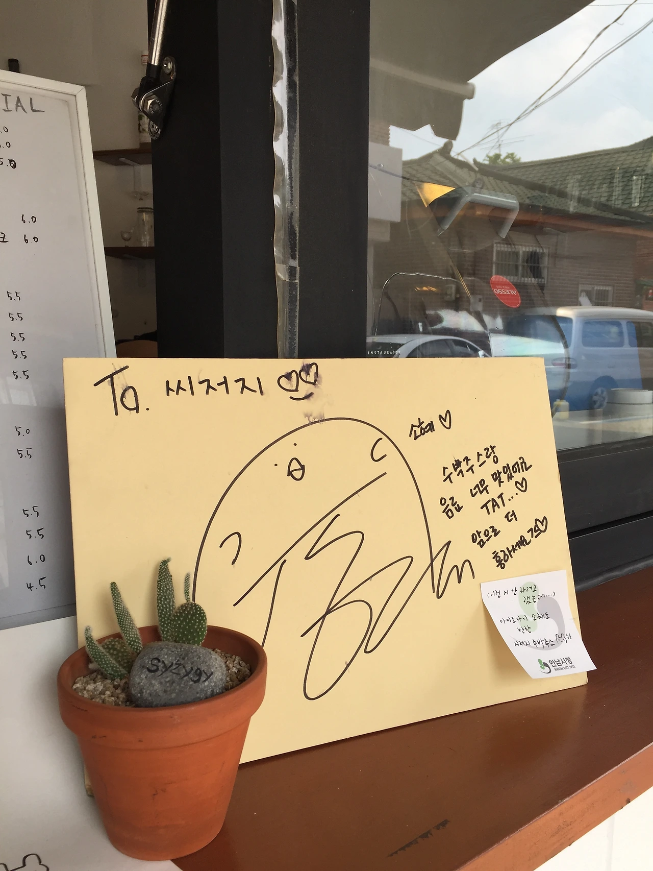 그리고 흥미롭게도 매일 가는 학교 앞 카페에 아이돌이 다녀갔다. 심지어 나는 소혜를 몰라서 주인에게 아는 척을 하다 궁금해져서 검색을 했다. 수박주스는 안 먹어봤는데, 먹어봐야지..