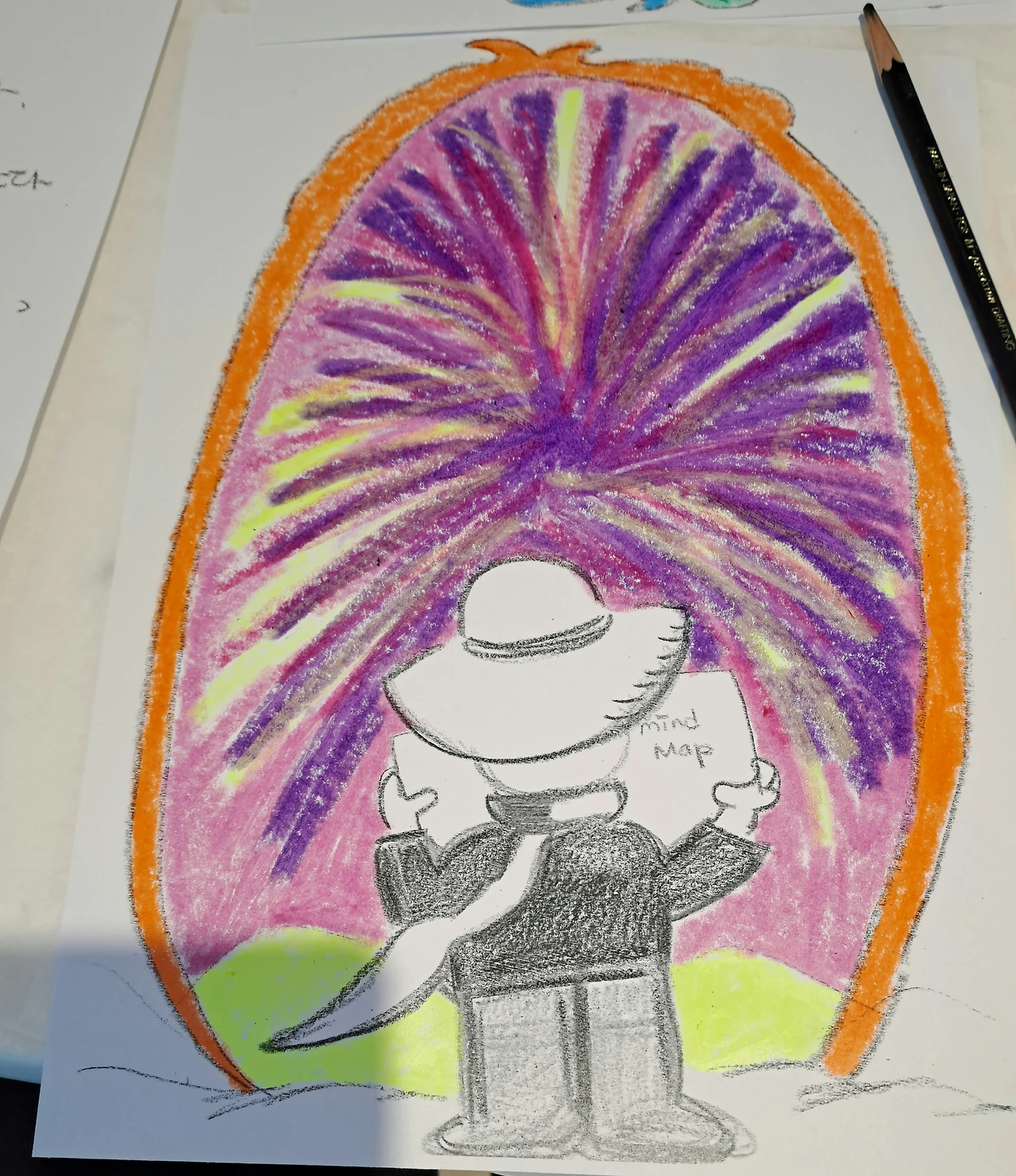 그래서 기쁨의 불꽃놀이를 그렸다. 여러 줄기로 팡팡 터지는 즐거운 불꽃놀이. 내 삶이 그런 순간에 머물기를 바라면서. 내 여행이 그런 것이길 바라면서.