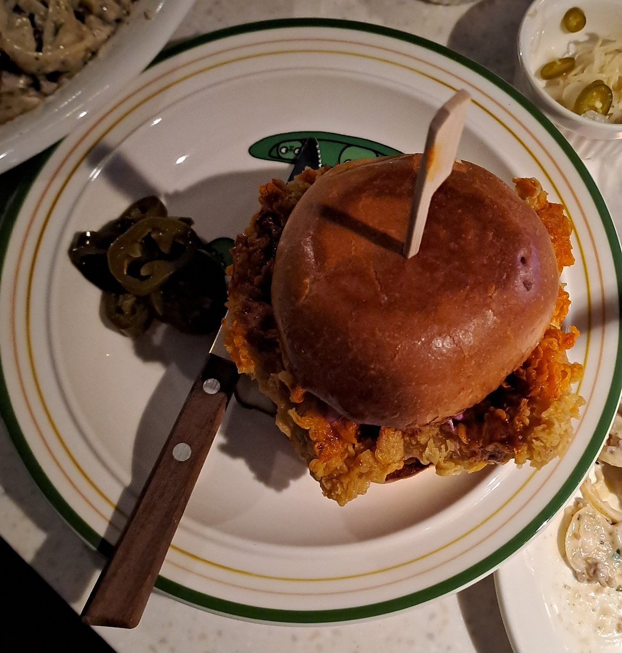 수제버거를 자르기 전엔 항상 긴장된다. 최대한 깨끗하게 자르고 싶어서. 나이프를 대고 햄버거를 썰면 잘 튀겨진 치킨의 기름기와 육즙이 흘러나온다. 튀김껍질과 야채, 치킨 조각이 흐트러지고 만다. 빵 따로, 치킨 따로 입속으로 넣게 된다. 그래도 결국은 맛있게 먹는 것으로 끝난다.