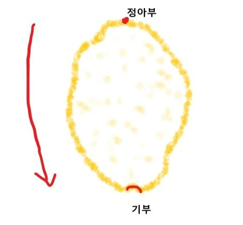씨감자는 주먹만한 크기가 좋다고 한다. 감자의 움푹 들어간 곳(기부)의 반대편(정아부)이 싹이 나는 곳이라고 한다. 정아부를 중심으로 씨눈이 주변에 집중되어 있다. 정아부 둘레에 약간 파인 곳은 싹이 날 부분인데, 이런 부분이 1개 이상씩 되도록 유의하며 정아부에서 기부 방향으로 4등분한다. 4등분한 감자는 1주일~10일 가량 그늘에서 말린다.