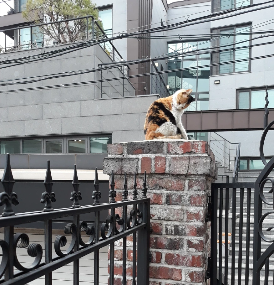 수업 듣던 집에 가끔 와있던 길고양이.. 이런 주택가의 예쁜 집이에요