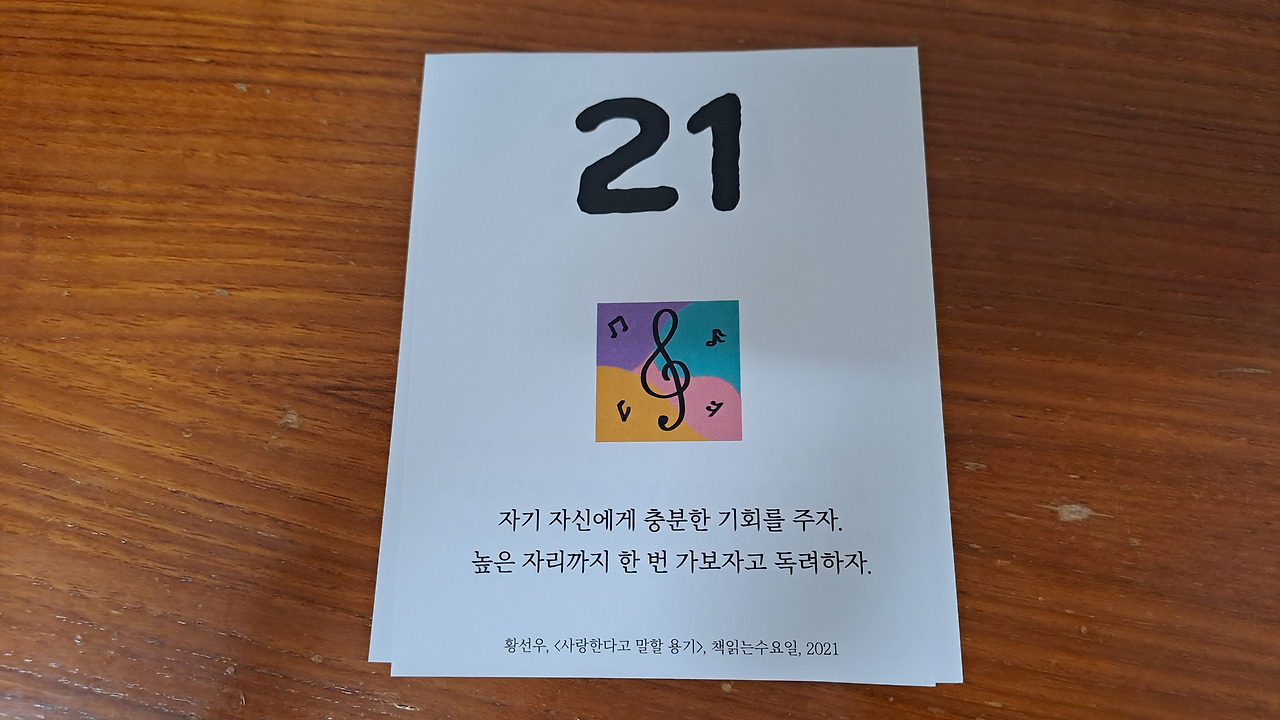 지레 겁먹고, 실패하는게 두려워 안주하고 싶은 마음이었는데 일력이 다정하게 말을 걸어오는 것 같았다.