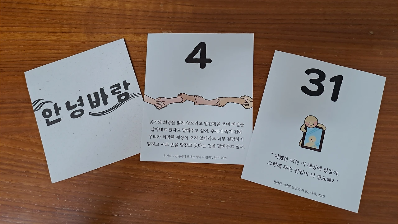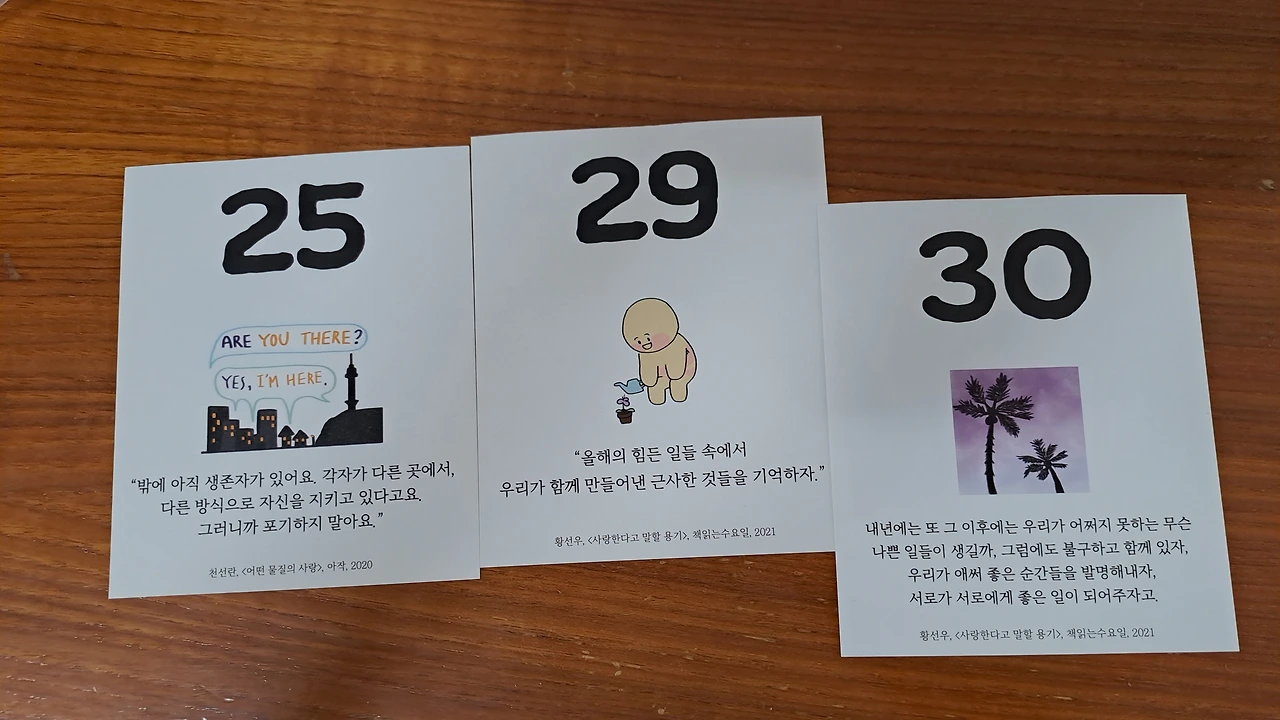 그때부터 매일 열심히 일력을 넘기기 시작했다. 위로가 되고 용기를 충전해주는 말들이 많았다. 마법주문처럼 일력의 글을 따라읽곤 했다.
