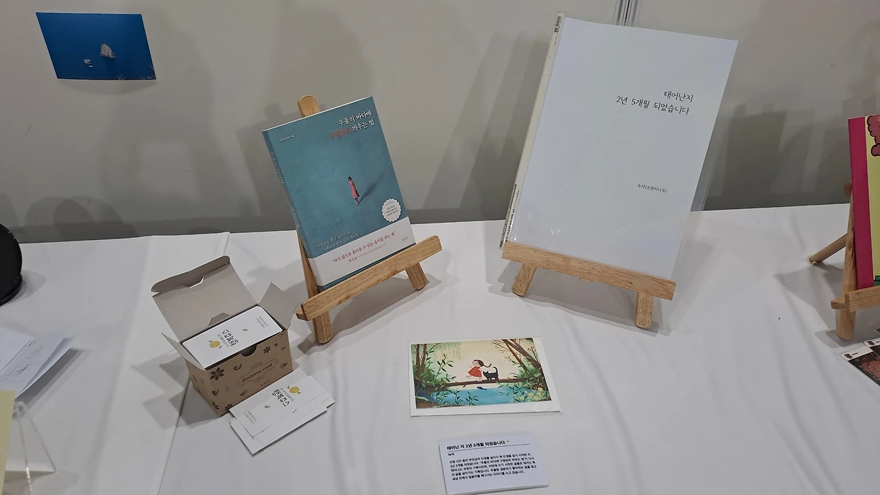 개인전시에는 내 책과 이번에 업무로 쓴 브런치 글들을 전시했다. 사내전시에서는 타로카드 책자와 타로 보는 테이블을 운영했다.