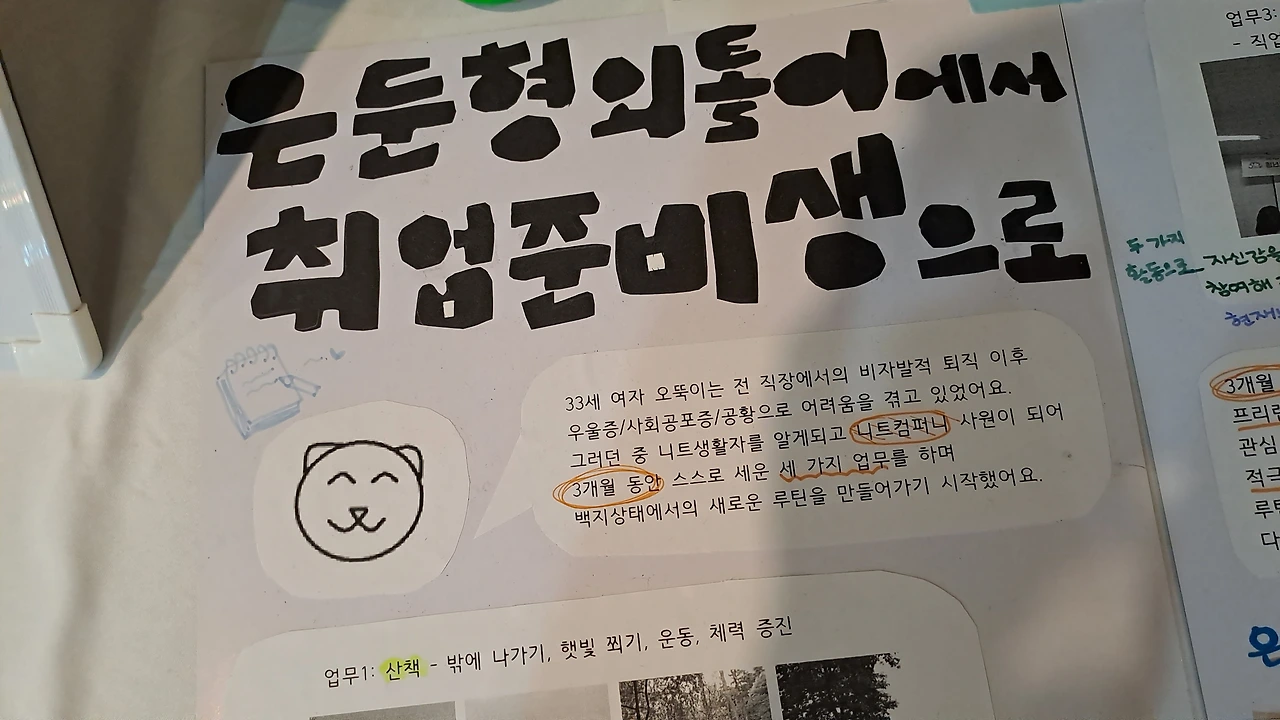 친구의 부모님이 전시회에 오셨는데 그게 참 부러웠다. 친구의 활동이 지지받는 것 같은 느낌이 좋았다. 나는 아빠한테 비밀로 하고 와야했는데...