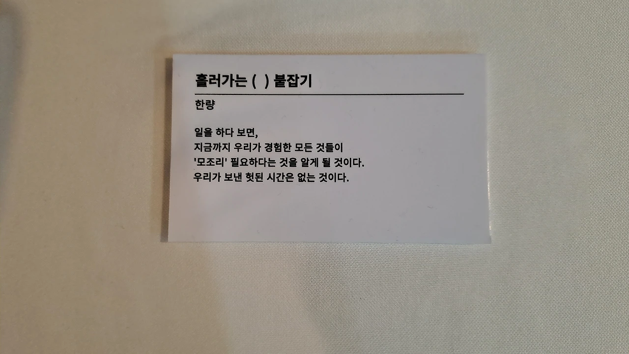 타로를 매개로 동기들과 이야기를 나눌 수 있어서 좋았다. 타로는 나 자신이랑 이야기할 때도, 남과 이야기할 때도 좋은 도구인 것 같다.