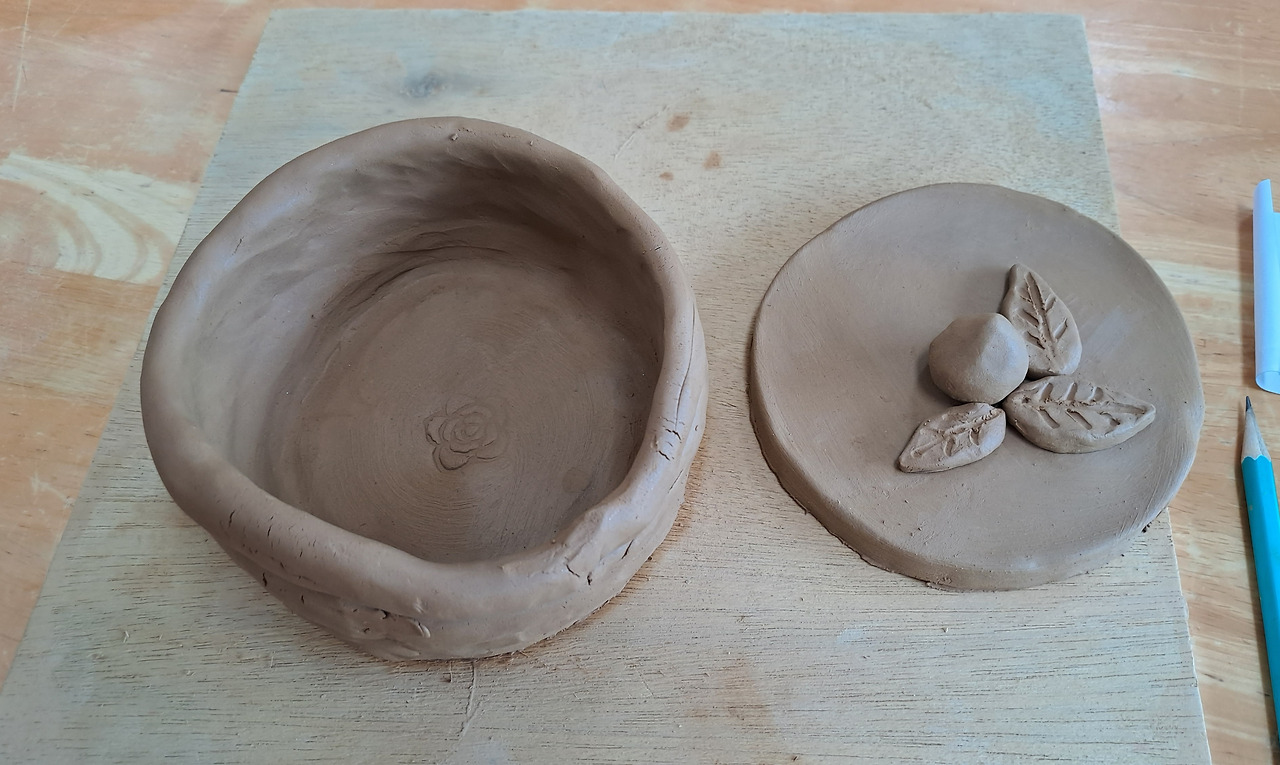 맨 처음엔 흙을 넓게 편다. 그 다음에 바닥, 뚜껑이 될 흙을 원 모양으로 자르고 흙타래를 만들어 하나씩 얹는다. 하나 얹을 때마다 틈새를 문질러 이어준다. 뚜껑을 장식하면 체험이 끝난다.