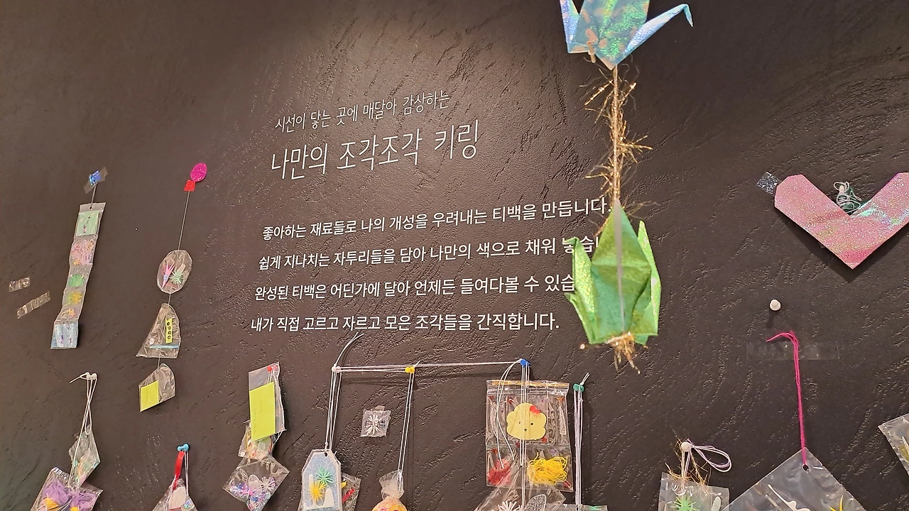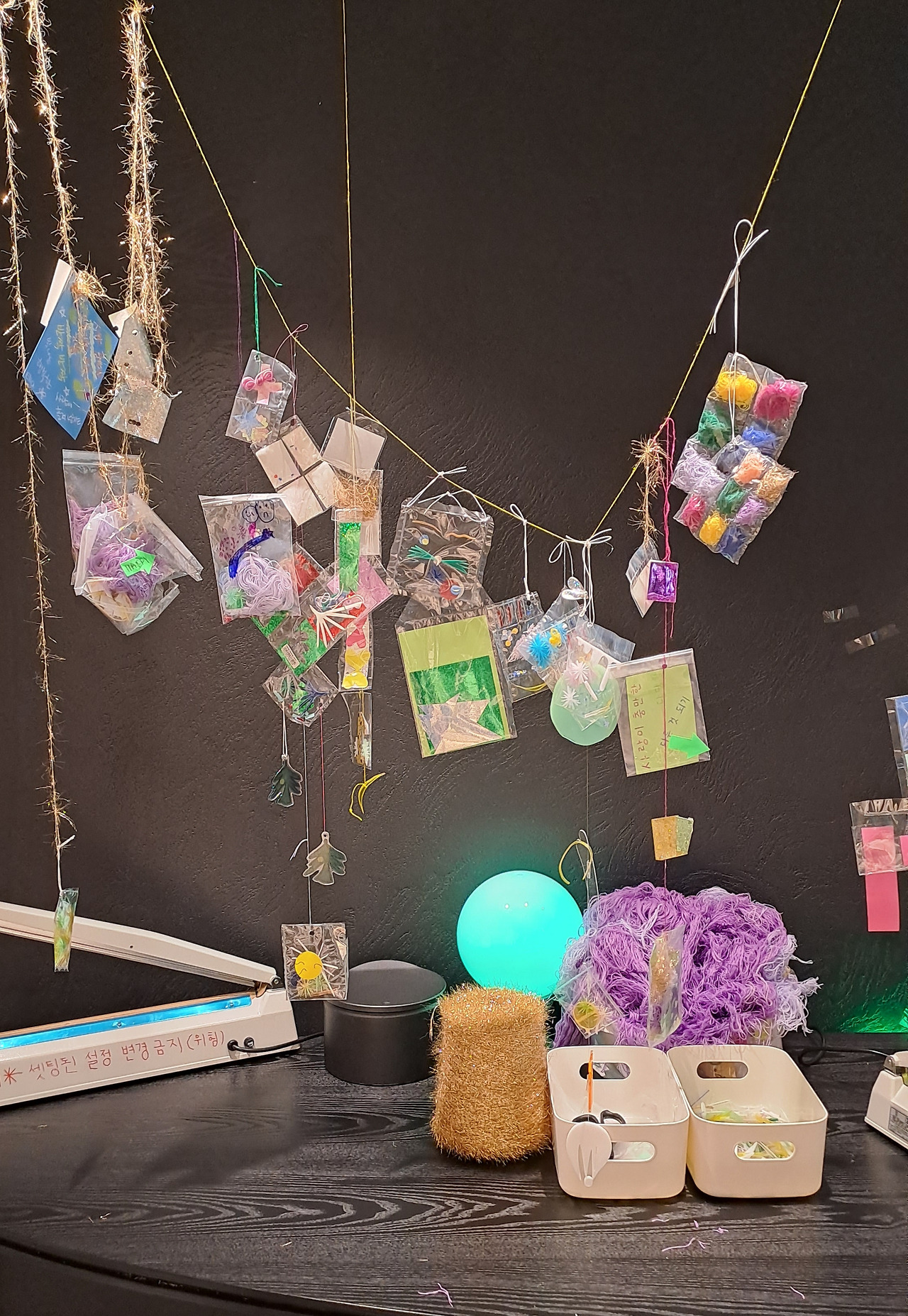그 다음에 우리는 '감정서가'에 갔다. 감정서가에는 감정들에 관한 체험을 해볼 수 있다. 우리가 갔을 땐 좋아하는 자투리들을 모아 나만의 개성을 우려내는 티백 만들기 체험이 진행중이었다.