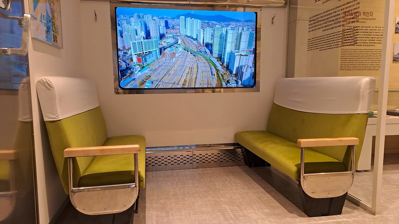그 다음은 철도 체험이었다. 편안한 의자에 앉아 영상을 보면 된다. 열차 창문밖 풍경처럼 영상이 스쳐지나간다. 편하게 앉아서 잠시 휴식을 취했다. 사실 그때 머리가 울리는 듯한 두통이 좀 생겨서 걱정이 됐다. 혹시 그때 다친 부분 때문이 아닌가해서...