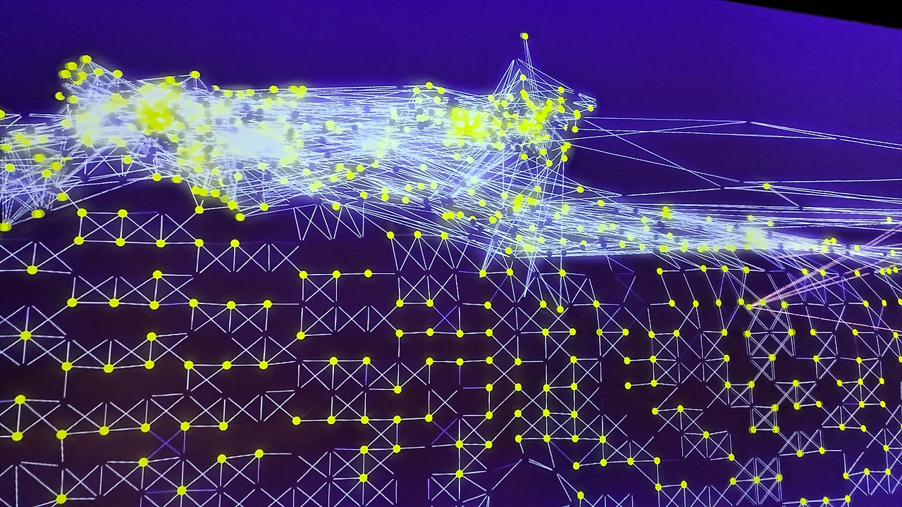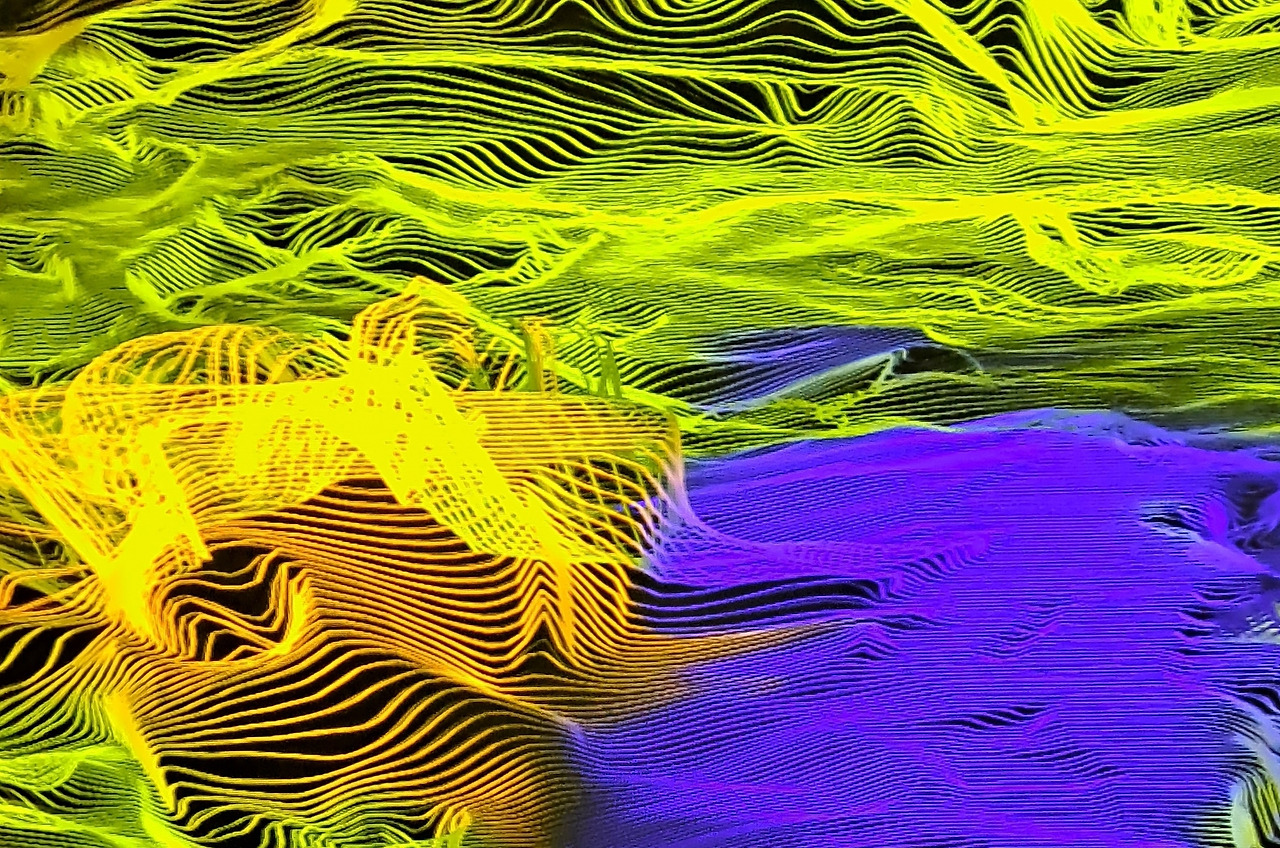 어둠속에서 나는 나의 경계나 모습을 잘 느낄 수 없었다. 내 모습은 스크린에서 물감의 파도같은 모습도 되고, 고정된 점에 묶인 선들이 되기도 하고, 결합되고 분리되는 세포들이 되면서 계속 변화하고 있었기 때문이다.
