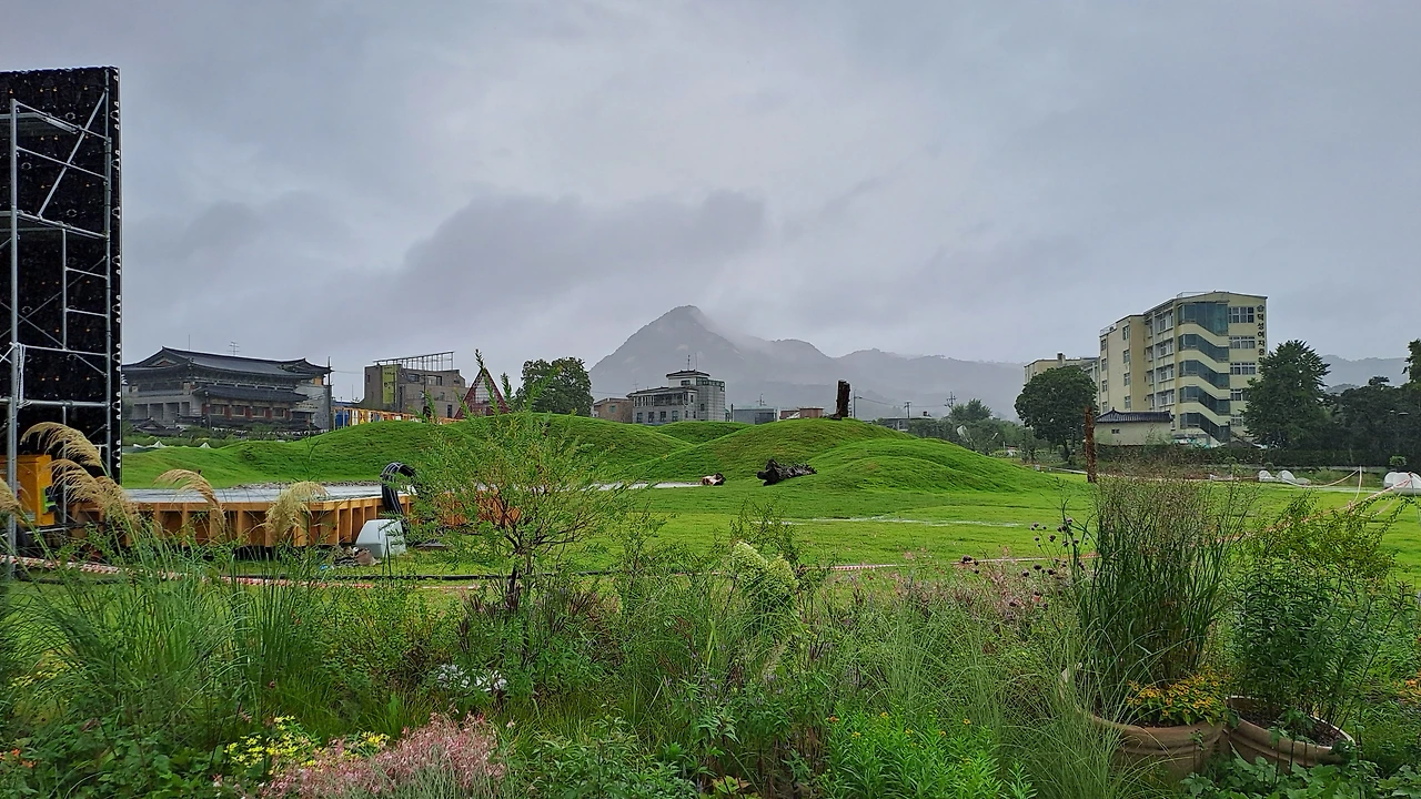 평소에는 볼 수 없는 비오는 날 오후 1시의 풍경들을 보는 것도 기분이 좋다. 먹물로 그려 하나씩 오려붙인 듯한 저 너머의 산, 비와 구름 그림자에 젖어든 경복궁 돌담들, 비를 피해 만난 '음과 양'이라는 어느 작품들, 보슬비처럼 가벼이 흩날리던 햇빛과 물 웅덩이... 그 모든 것이.